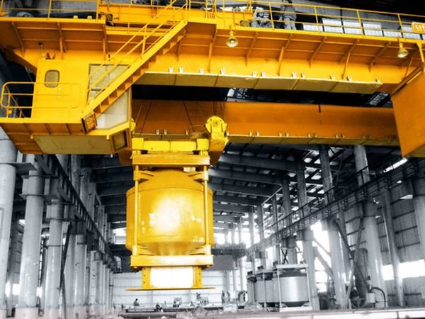 精準定位起重機(又稱為料罐起重機、冶金上料起重機),該起重機主要應用于鎳礦、電石冶煉行業,吊運850℃紅土鎳礦焙砂料或電石料罐,中控室控制,能實現無人操縱、智能化上料,可根據料倉盈虧自動分配料砂,是整個冶煉過程的重要組成部分之一。